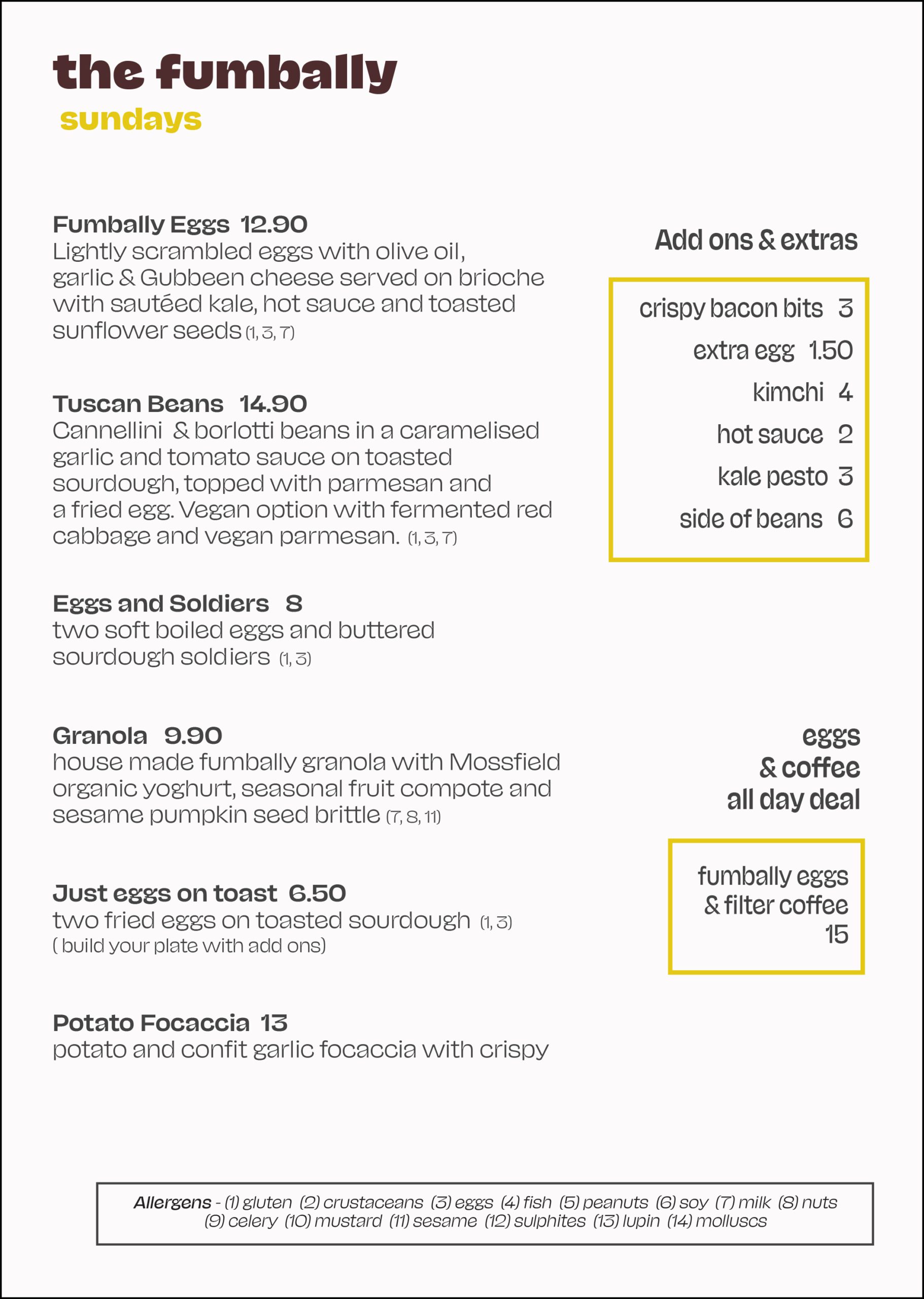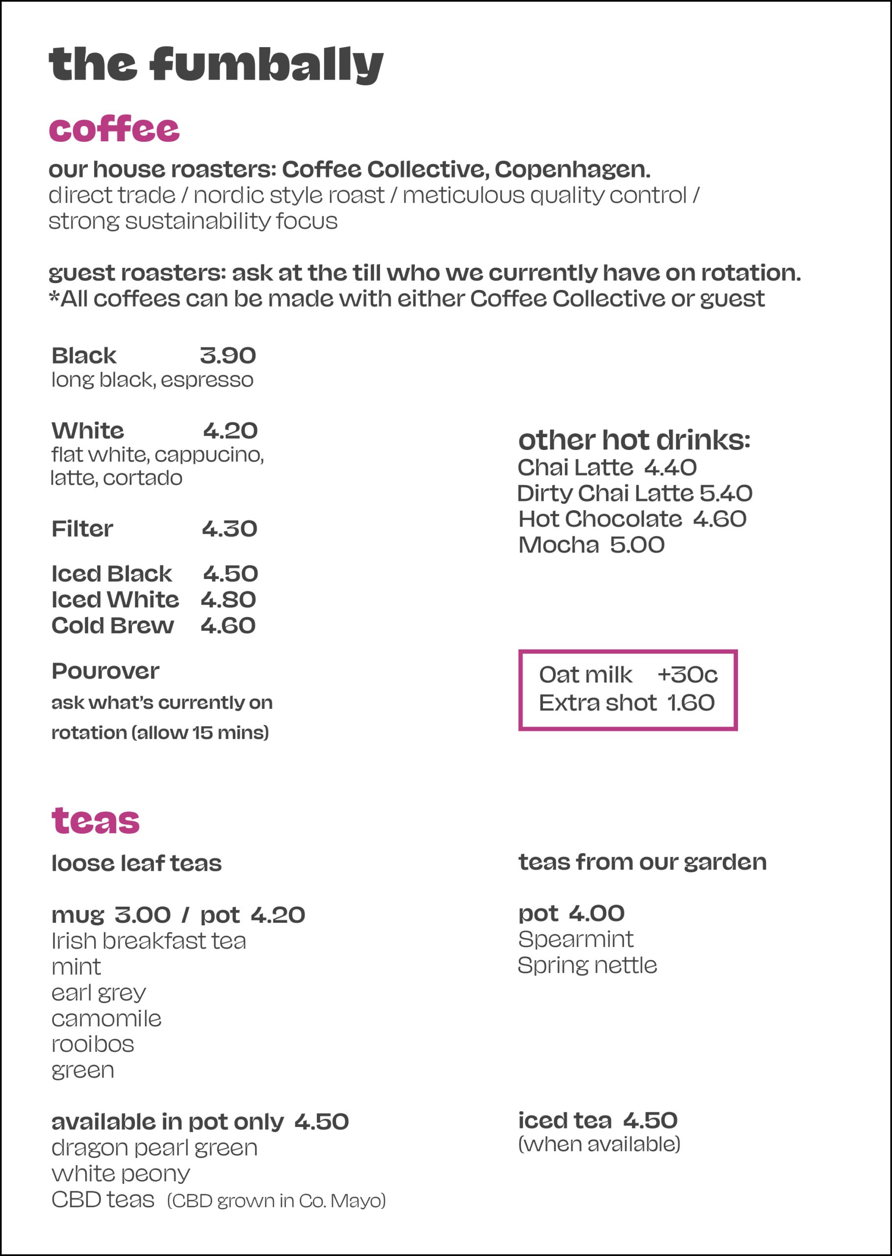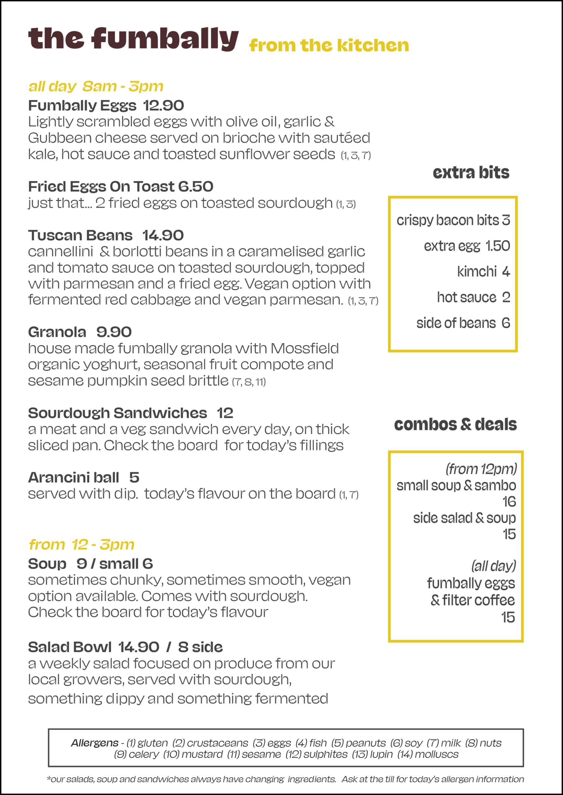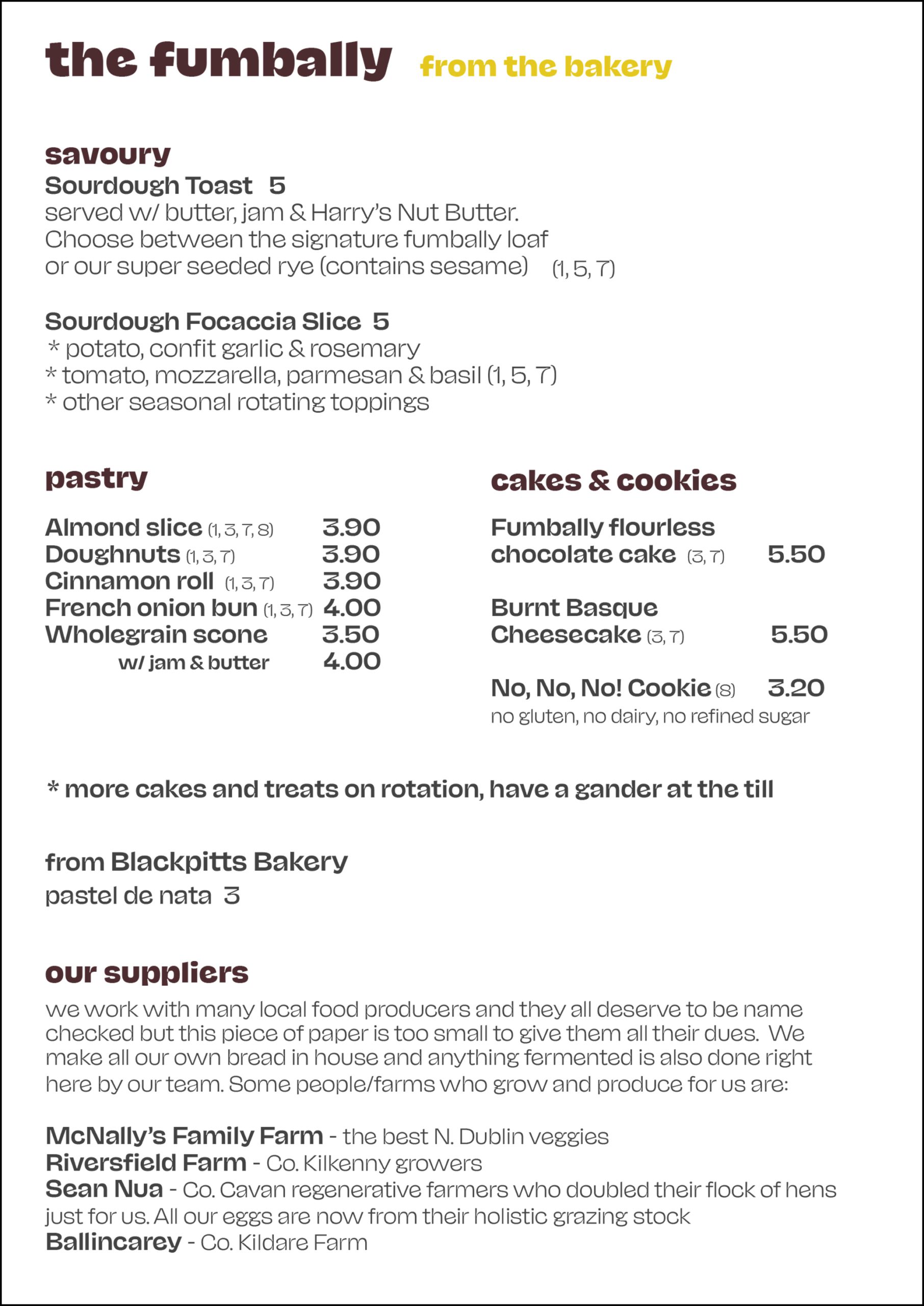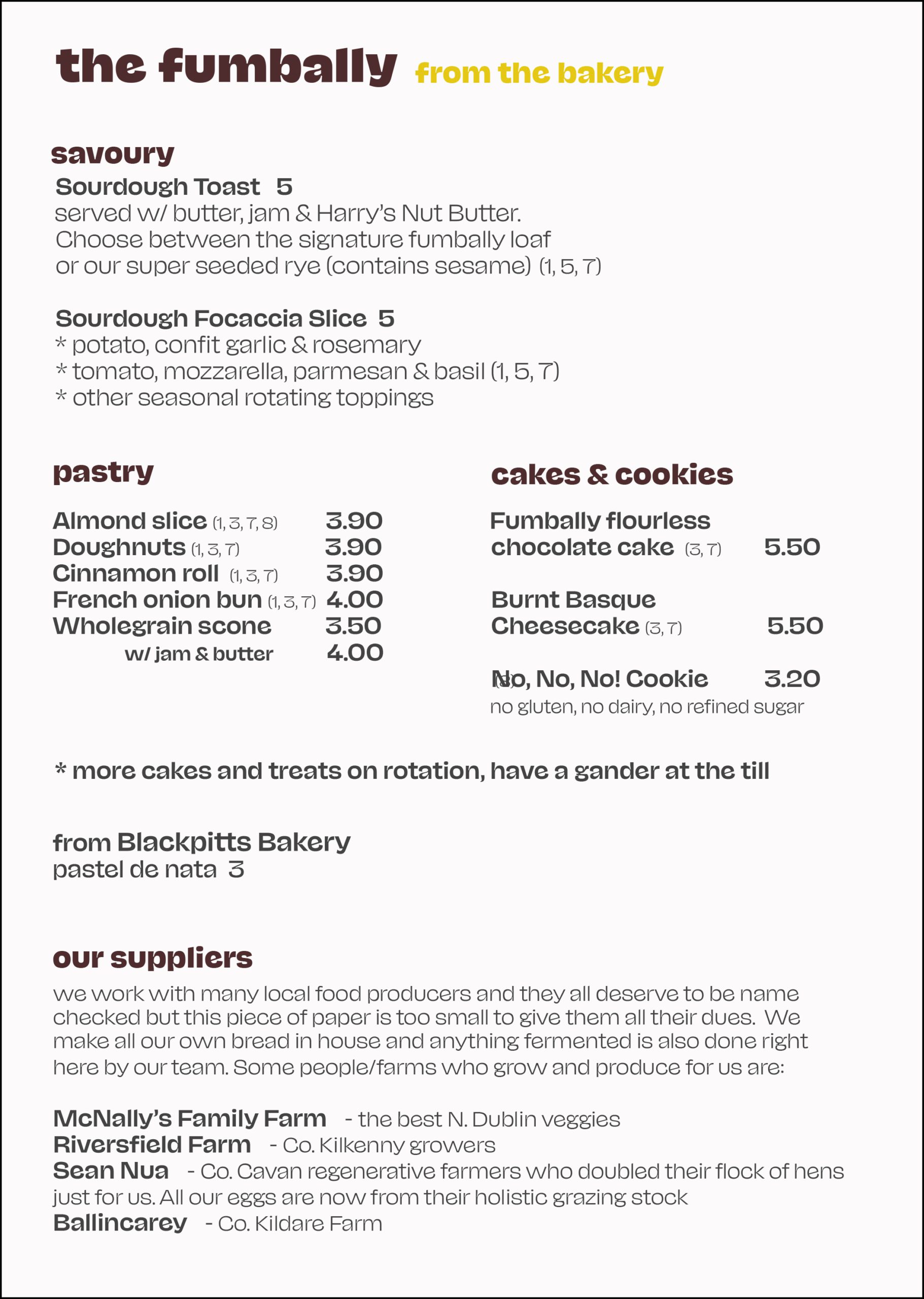Current café menu