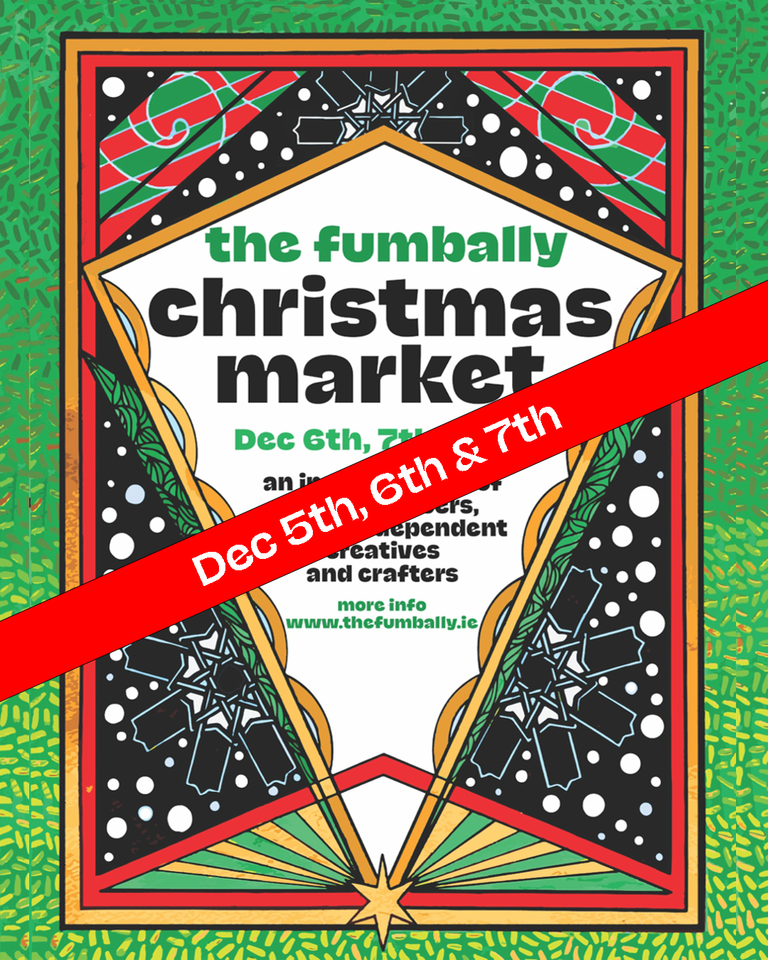 Every December we give over the full building to a three day market of independent creatives, food producers, artists and traders of all sorts. Emphasis is on small, independent businesses and a community vibe that is 100% about supporting local at Christmas without even needing to say it (although we just did. Ha!) All indoors and over two floors, there is food from the kitchen, mulled wine and mince pies (of course) an annual raffle that raises money for a local charity and the fumbally café always open alongside.
